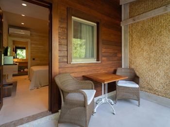Номер "мандарин" - просторный, удобная кровать (по просьбе это могут быть две отдельные кровати), есть телевизор, холодильник, сейф, чайник с набором кофе и чая. Минибар платный. Вода ежедневно пополняется персоналом при уборке. Ванная комната также очень просторная, белоснежные полотенца (меняют ежедневно), косметические принадлежности. Уборка ежедневная и качественная. Уютная веранда с комплектом плетенной мебели. WiFi практически на всей территории отеля.