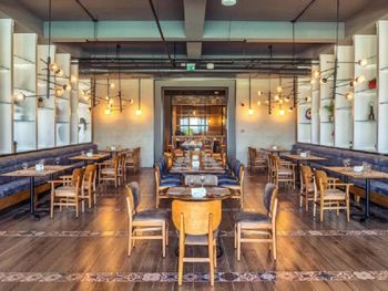 Довольно посредственная еда и напитки. Вообще везде. Нет зон для некурящих.