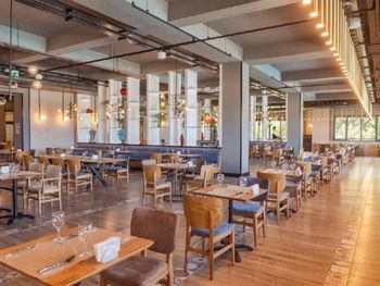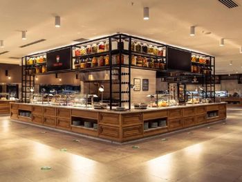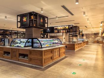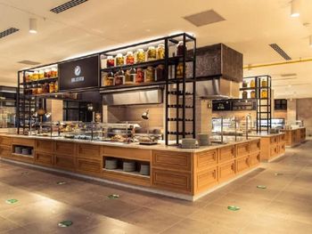 -- пол-ресторана было закрыто, и все все накладывали вокруг центральных столов;