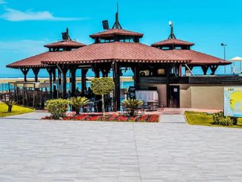 Павильоны на пляже есть, но отдельного душа у них нет, т.к. весь пляж через них ходит, нет обслуживания по напиткам и еде в павильонах даже за дополнительную плату, плохое расположение павильонов - у забора, вход в море у павильонов узкий и неудобный, приходилось через общий пляж идти, алкоголь только местный, соответствующего качества (даже в а-ля карт), однообразное меню не меняется изо дня в день, не умеют готовить каши совсем, разнообразия продуктов на ждите один вид мяса, рыбы. Через букинг цена выше чем при брони на месте, что очень удивило. Оплатил стандартный номер, а на ресепшн по его цене шёл двухкомнатный.