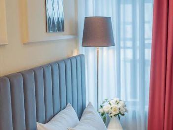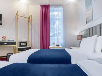 Номер очень маленький- заявлено 18 м2, но это не соответствует действительности, вдвоем сложно разойтись, нет места разложить чемодан, такая же маленькая ванная комната,. Мы в номере находились мало, но даже при этом чувствовали дискомфорт. Отсутствует шкаф так как для него нет места. Были в ноябре и схватили простуду, не было возможности нигде взять горячую воду- чайник не предусмотрен, кулера в отеле нет, ресторан работал только на завтраках, потом закрывался и соответственно купить горячий чай тоже негде. Приходилось простуженным ходить за чаем в ближайшее кафе, что очень неудобно когда болеешь. На завтраках емкость в которой находились горячие блюда- омлет, сосиски, греча, не подогревалась должным образом- еда была почти холодная. Хотя сами завтраки вполне разнообразны.