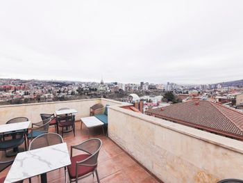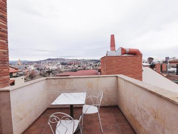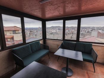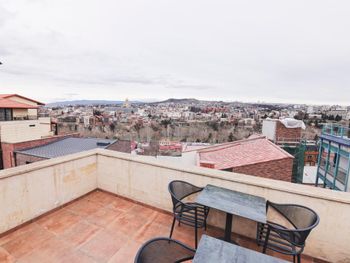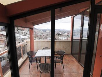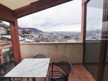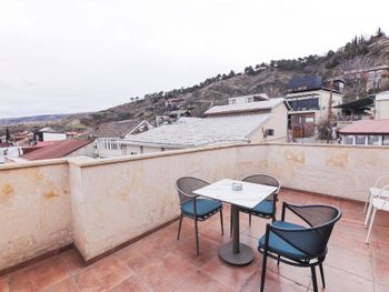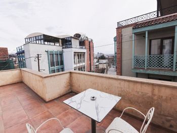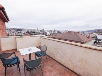 Отель новенький, номера современные. Хоть и небольшие, но очень все красиво, уютно, продумано, всё есть - личный санузел, сейф, стол, чайные принадлежности, даже вино и красное и белое стоит уже в номере всего по 19 лар! Штопор есть, бокалы очень красивые высокие стоят. Личная терраса! Виды потрясающие! А такжк можно подняться на общую террасу на 7-м этаже, там вообще красота, круговой обзор на Тбилиси!
