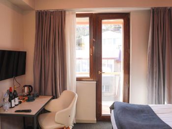 Комната маленькая, в номерах с балконом, балконом это назвать можно с большой натяжкой, в номерах с терассой, терасса это просто балкон с видом на стройку, с улицы идет шум от стройки. Проживали в 310 номере, в номере и на этаже постоянный запах канализации. На подходе к гостинице кругом разруха и помойка. Завтрак не вкусный, однообразный, выбор маленький, кофе безвкусный , кофе получше из кофе-машины стоит 6 лари. В прошлом году проживали в гостиницу напротив Sole palace, тоже конечно не четыре звезды, но на порядок лучше, разница в цене не существенная, хотя отзывы примерно такие же.