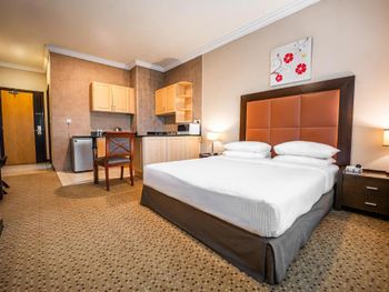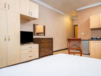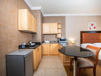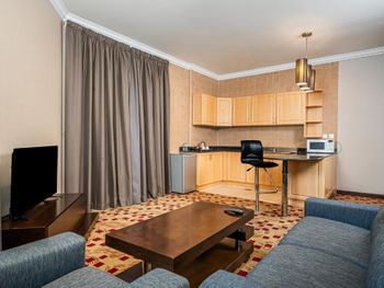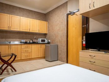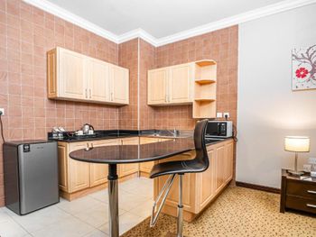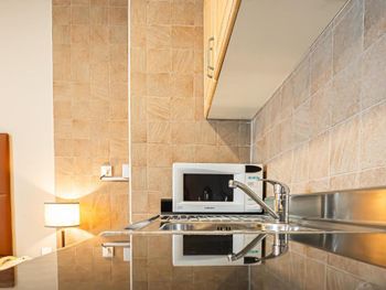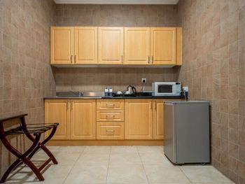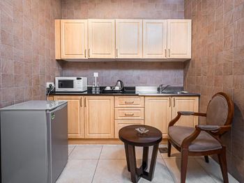 В номере есть миникухня с раковиной, микроволновой печью и холодильником.