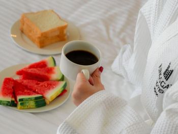 В комнате холодильник, микроволновка, чайник. Посуды нет, но думаю можно спросить в кафе.