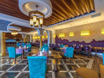 Маленькая территория для такого количества проживающих, безобразная анимация, ориентированность на туристов из мусульманских стран , переполненность ресторана ( в очереди нужно стоять за каждым блюдом, сесть некуда). Грязные лежаки, плохое качество предлагаемых в барах напитков( попытки заменить все дешевым "аналогом") , отсутствие приемлемого питания для детей ,порошковые соки и т.д.