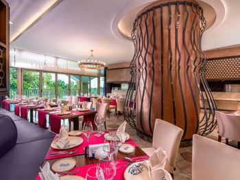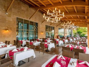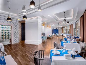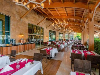 Один из ресторанов отеля работает в формате «шведский стол», а в другом обслуживают по меню. В баре можно приобрести закуски и напитки. Для детей накрывают отдельный «шведский стол».