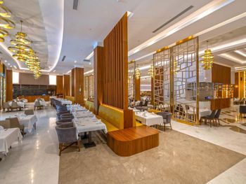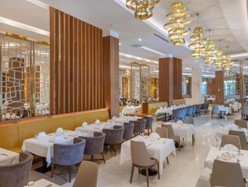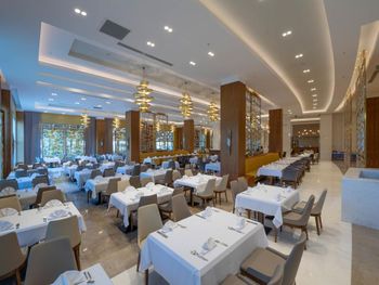 Один из ресторанов отеля работает в формате «шведский стол», а в другом обслуживают по меню. В баре можно приобрести закуски и напитки. Для детей накрывают отдельный «шведский стол».