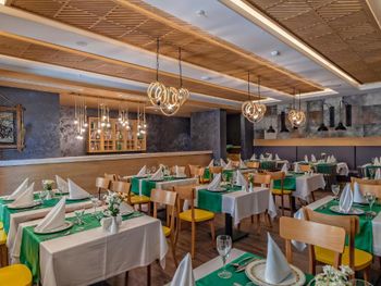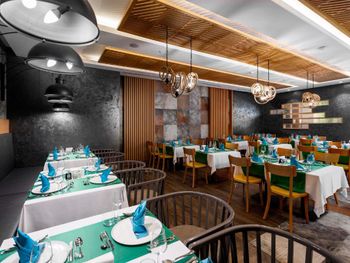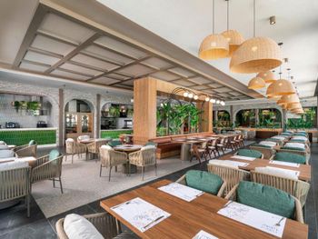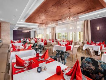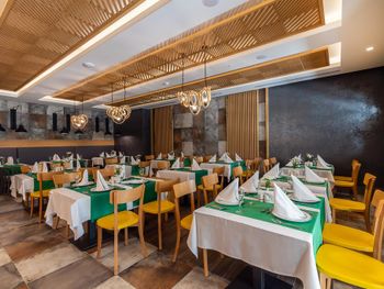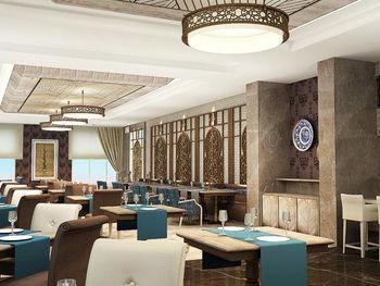 По утрам в отеле сервируется завтрак «шведский стол». Блюда средиземноморской и османской кухни можно отведать в ресторанах с обслуживанием по меню. В ресторане, работающем по системе "шведский стол", подают блюда турецкой и интернациональной кухни.