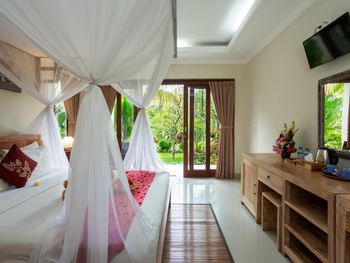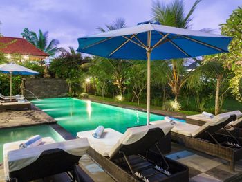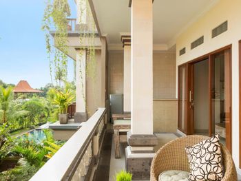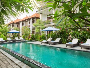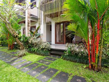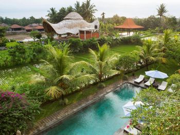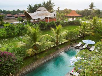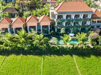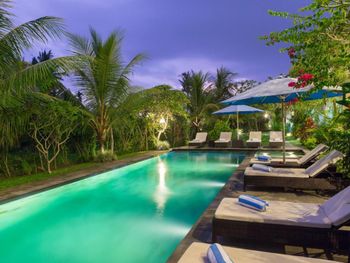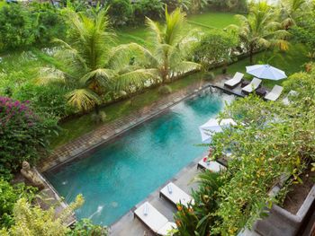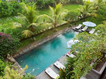 Хорошее месторасположение, до главного храма Убуда 25 минут пешком. Обезьян вокруг отеля и на территории обнаружено не было. Шикарный бассейн, утопающий в зелени. Завтрак по меню