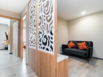 В отеле не открываются окна и нет сушилки, где можно спокойно оставить сушиться вещи. Около окна начали ползать муравьи через день после въезда. В душе нет бортика и вода выливается за пределы душа. Душно в коридорах. Вода в бассейне в последний день отпуска окрасилась в зелёный цвет, до этого вода была чистой под цвет голубого бассейна.