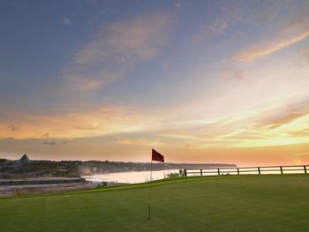 Вид на гольф поле очень приятный и потрясающий вид в ресторане на крыше.