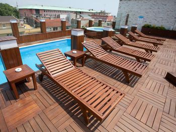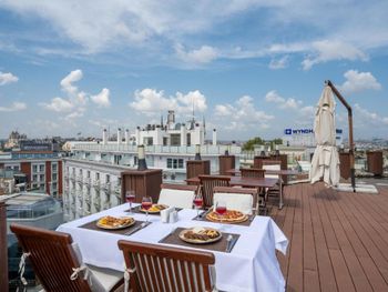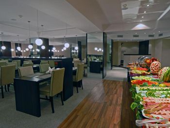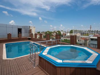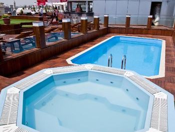 Ужасный завтрак, буквально невозможно есть. Ужин был немного лучше. Цена не соответствует качеству. Бассейн на крыше маленький. Номера, бассейн и столовая обветшалые. Слышно шум от соседей и из коридора. Лифты работают так как им нравится, могут поехать не на тот этаж. Низкие потолки. Одно окно в номере выходило в какую-то глухую шахту.