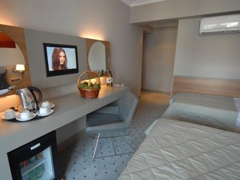 Не первый раз останавливалась в отеле, но последний это точно. Начнём с того, что при заселении был предложен номер проще и дешевле, чем был забронирован. Пришлось выясняться с ресепшн, после чего поменяли. Далее, при заселении номер был грязный, сообщили на ресепшн, попросили убрать - реакции ноль. На следующий день сфотографировали и записали видео, показали главному менеджеру, только после этого убрали. Завтраки настолько скудные и невкусные, что иногда приходилось после «завтрака» завтракать на улице. На ресепшн сидел просто ужасный мужчина. Было ощущение, что его все раздражают, он всех ненавидит и ему всего жалко. На просьбу о стакане чая - нам было отказано!!!! ОТКАЗАНО В СТАКАНЕ ЧАЯ В ТУРЦИИ!!! Нонсенс! Сказано «корона. Нельзя» не понимаю, какое имеет отношение коронавирус к чаю в одноразовом стакане? Сходили в соседний отель, взяли у них чай и пришли к себе в номер его пить. Нормально? Раньше в номерах был чайник, кружки, чайные пакетики. В отеле курить запрещено, но почему-то арабы в соседнем от нас номере, весь вечер смолили так, что на утро вонял весь холл этажа. Обратились на ресепшн- реакции ноль)))) Пока сами лично не отматерили арабов на смеси турецкого, английского и русского. Опять же раньше в этом отеле не селили в соседние номера женщин и мужчин... Одним словом - ужасно! Особенно когда знаешь как было раньше.