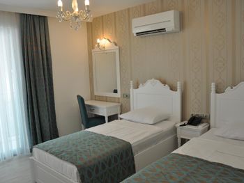 По приезду в отель в 13.55 попросилась пообедать и еще успела немного перекусить. Дальше было заселение, мне выдали карту и отправили на второй этаж. Шок был от всего. Холодный, неуютный номер с балконом выходящим на стену. Между кроватью и стеной проход в 40 сантиметров, одеяло верблюжье и грязная вафельная простынь вместо пододеяльника. Душ отваливался постоянно, чтобы вымыться пришлось приспособиться включать маленький напор. Из туалетных принадлежностей засохшие у пробки 2 бутылочки с непонятным содержимым и мыло маленькое. Тапочек нет, пол ледяной. Сходила на ресепшен, с просьбой поменять номер, но сказали, что этот номер очень хороший. Какие же тогда плохие??? Не хотелось портить себе настроение, ушла гулять и ждать, когда закончатся мои 4 дня в этом отеле. После этого отеля уехала в Анталью в 2*, так там было намного лучше!!!