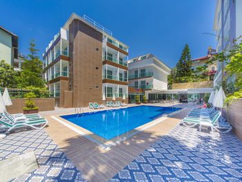 Шикарнейшее месторасположение, лучше наверное не найти во всей Аланьи, прекрасный пляж Клеопатра с золотистым песочком и прозрачнейшей водой