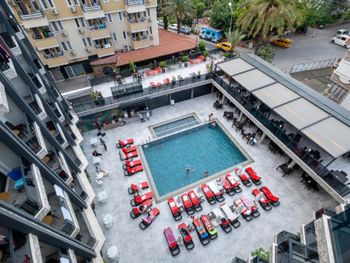 Белоснежное белье, полотенца, все целое, чистое, регулярно менялось, чистота в номере и на балконе, ежедневно уборка, чистый бассейн, регулярная дезинфекция в нем воды, всегда есть горячая вода и хороший напор. Исправный лифт. Небольшой ассортимент питания, но всегда все свежее и вкусное, мясные блюда готовит повар "от бога". Пища не острая, диетическая. Для деток особого выбора нет, каши нет. Посуда всегда чистая, без сколов, есть в наличии. Прохладительные напитки типа юпи всегда в доступе и наличии, очень приличные на вкус и цвет. Кофе машина исправно работает и готовит большой ассортимент горячих напитков. Вкусный чай. Территория компактная, всегда поддерживается чистота, приличная мебель в ресторане и у бассейна. Доброжелательный персонал начиная от управленцев до уборщицы. Все старательно работают, качественно выполняют свою работу, всегда готовы помочь и решить любую проблему . Удобное расположение до любой точки в Алании, супермаркеты, рынки, крепость, центр, порт. Пляж Клеопатры широкая и протяжённость береговая линия из мягкого песочка. Прозрачная вода, даже на глубине 10 м., есть рыбки пара видов. В основном все лежат на песочка, лежаки платные - пустуют. Отель арендует этот пляж, поэтому там все платно, есть пляжный бар, муниципальный вай фай (до 1 ноября, потом отключают в не сезон). До пляжа 5 мин. Вход из плит шириной 1-2 метра, далее естественное дно. Плиты гладкие, скользкие, но тапочки не понадобились. В 100 метрах есть параглайдинг, а также водные виды развлечений. Цены приемлемые, работают в основном все до 1 ноября. У нас было самостоятельное путешествие, без турагенств. Экскурсии брали у проверенных местных. Цены в 2 раза дешевле. Большой плюс, что рядом мигрос, есть рядом больница и автовокзал.