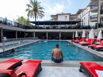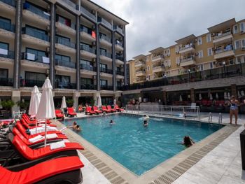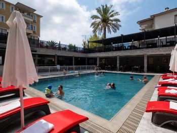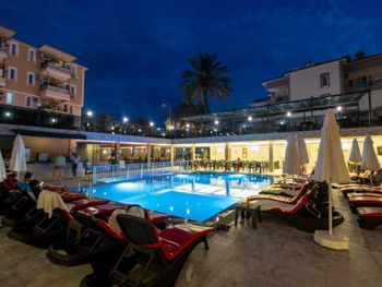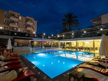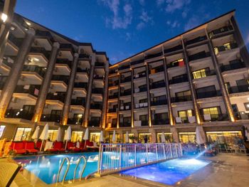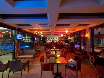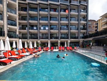 Питаться здесь оказалось вообще невозможно. Выбор блюд сильно ограничен, еда не вкусная, иногда очень острая и без альтернативы. Мяса нет, только курица или котлетки из фарша сомнительного состава, сосиски один раз были. Напитки отвратительные, кроме чая, чай отличный. Вино-дешёвый бренди, разбавленный водой. Пиво разбавлено водой. Далее мы ходили только на завтраки, пили чай с хлебом с мёдом. Номер убирается каждый день, но очень плохо: забрали мешок с мусором и вытерли пол одним движением по прямой линии, оставляя песок между кроватями и под столом. При этом ухитрились выбросить случайно и один из пакетов с одеждой, который видимо ребёнок поставил на пол. Прояснить эту тему не удалось ни с горничной, ни с ресепшн. Горничная не поняла о чём речь, а на ресепшн обещали выяснить и забыли. Ресепшн также дал неверную информацию о номерах автобусов, которые останавливаются на нашей остановке, и ввёл в заблуждение по поводу перевода часов на зимнее время. По системе «всё включено» у нас был платный сейф в номере, платная питьевая вода в бутылках, платные зонты и лежаки на пляже, платные напитки на пляже, платный интернет, весы для багажа за плату, платный вход в сауну и хамам даже без услуг банщика. Сауна холодная, так как печка очень маленькая, хамам тёпленький. Туда даже бесплатно ходить незачем. Брали у уличного агентства поездку в баню, остались довольны. При выборе данного отеля важно было наличие крытого бассейна, который здесь заявлен в списке услуг. Отбирали именно по этому фильтру. На фото его нет, но мы подумали, что он наверное маленький и находится в спа-зоне. Но его нигде нет. Только открытый бассейн. В октябре в открытом бассейне холодно, сын один раз скатился с горки, напора воды оказалось недостаточно, чтобы сдвинуть с места человека весом 30 кг. Видели, как там катались взрослые немцы кучей на матрасе по несколько человек. Очень громкая музыка в нашем баре под окнами, в полночь ходили ругаться.