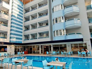 Отель в близко к центру и пляжу Клеопатра расположен. Каждый день несколько раз есть трансфер на пляж и обратно. Вечером трансфер в центр города.