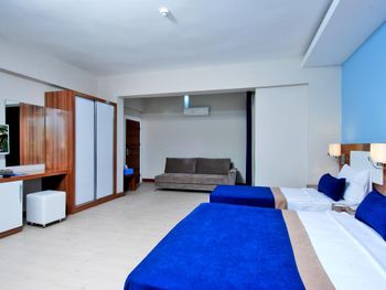 Мы хорошо отдохнули в этом отеле. Хорошее соотношение цены и качества. Очень приветливый персонал, всегда рады помочь. Особо хочу отметить работу русскоговорящей девушки Зайнеп, которая нам дала много полезной информации. В ресторане широкий выбор блюд на любой вкус. Пиво отличное, остальные напитки понравились меньше. Развозка до пляжа работает хорошо, надо просто успеть занять место, несколько раз ходили пешком до пляже, это недалеко. Мы заказывали в отеле индивидуальный трансфер до аэропорта Анталии, всё прошло отлично. После стандартного номера у нас была другая бронь в семейном номере. Сравнивая, могу сказать, что в следующий раз я бы забронировала эту категорию, так как семейный номер с двумя комнатами более комфортный вариант. Естественно его стоимость немного выше. Общее впечатление от отеля приятное. Это не люксовый, но хороший вариант с питанием. Для тех кому не нравятся огромные туристические структуры, это довольно уютный отель. Кстати, видно было, что этот отель пользуется спросом у турецких семей. Их было немало наряду с туристами из других стран.