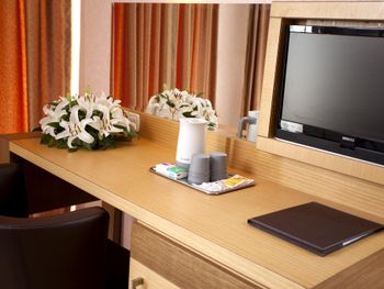 По телевизору в номере 600 каналов (турецкие, немецкие, французкие), но даже нет ни одного музыкального. Автомат с напитками не работал. Половина напитков в кофе машине очень разбавлены водой.