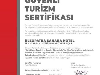 Kleopatra Sahara Hotel — это отель на первой линии города Аланья, в 300 м от такой достопримечательности, как Пляж Клеопатра. Гостям предоставляются сезонный открытый бассейн, ресторан и бар. Поблизости находятся Пещера Дамлаташ, Луна-парк Алании и Культурный центр Аланьи. Гости могут обратиться к сотрудникам круглосуточной стойки регистрации, воспользоваться трансфером от/до аэропорта или доставкой еды и напитков, а также подключиться к бесплатному Wi-Fi.