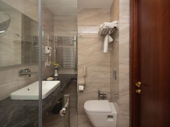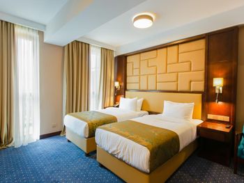 В номере спать невозможно. Шум не с улицы, а постоянный шум от инженерного оборудования. если кто то открыл Воду в соседнем номере, или во всей гостинице в номере шумит как на магистрали. И шум нереальный. Спать можно только сильно выпив. Маленький санузел. Если вам дали воду, то не получите зубную щётку. Попросите зубную щетку, вам не дадут воды. Очень дорого за такое качество.