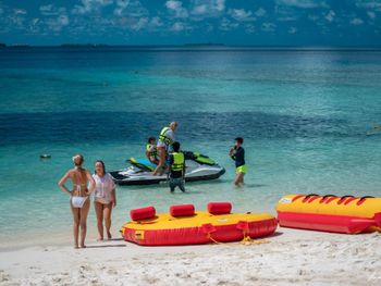 1. Очень чисто. Смена белья, полотенец - отлично. Расположение на острове - собственно в самом лучшем месте. Персонал - очень дружелюбен и стремится сделать ваш отдых приятным! Абдулла - ваш настоящий друг на острове, можете ему доверять в полной мере. Радж окружает вас заботой и старается сделать все, чтобы вам было комфортно. В гэстхаузе всего 4 номера, в одно окно смотрит прямо в стену - ничего страшного, когда жили с окном в шторы все равно ни разу не открывали :) Питание: 1. Все очень качественное. На обед ужин лучшее - Tuna salad, grilled fish, banana split. Рис/лапша по азиатски - вкусно. Остров Ukulhas - всячески рекомендую!!! просто плавая с маской вы встретите всех персонажей "В поисках немо" и даже больше. Как минимум четыре черепахи живут на рифе и вы всегда встретите их днем на рифе со тороны причала, реже - с противоположной стороны. в 17-17-30 с помоста у причала в воду выбрасывают кости/кишки тунцов. В это время делать там нечего, вода мутная и ничего не видно. Если приплывете около16-16-30 туда с маской - встретите всех: Скатов (мы видели минимум 2-х), черепах, рифовых акул, акул-нянек (самая большая - метра 2,5-2,7 в длину) и кучу разных рыбок (это всегда). Также есть смысл прийти вечером с хорошим фонарем - вода уже прозрачная. но пир продолжается, и акул и скатов можно понаблюдать от души. Обязательно берите "ночную рыбалку" - ощущения выше средних, клев просто отличный мы наловили килограмм 6-8 на вид, и на обед из лучших экземпляров на следующий день был просто божественный (входит в цену рыбалки) Мы также ездили снорклить с мантами - тоже отлично, очень рекомендую! Вы будете на персональной лодке с персональным гидом - это совсем не то же, что на большом корабле, где 20-30 человек! Там надо будет несколько раз прыгать с лодки, смотреть мант, затем забираться и переезжать, снова прыгать и т.д.