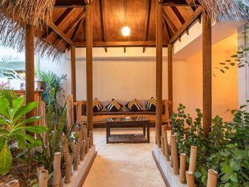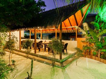 Отличное расположение, рядом два хороших пляжа. В гостинице всего 4 номера, которые находятся на первом этаже, вход с улицы, своя небольшая, но огороженная территория. Ресторан на улице под красивой крышей. Сама территория при отеле ухоженная и аккуратная. Пляж буквально в 20-ти метрах. Отель находится в самом лучшем месте на острове. Риф на острове есть, но он полувымерший. К сожалению увидеть много ярких кораллов в 2025 году не получится. Но рыбок много. Скаты, акулы, красивые рыбки - это всё пока есть.