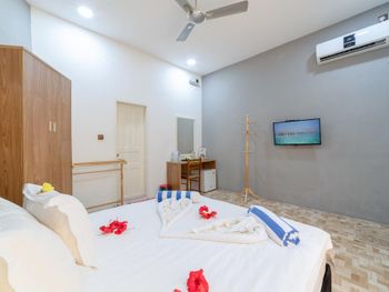 Это действительно лучший гестхаус на острове. Здесь абсолютная тишина, хотя на острове ведется активное строительство. Идеальное расположение между двух пляжей. Еда - выше всех похвал! 7 видов завтраков, огромный выбор ланчей. Особенно рекомендую малльдивское карри и жареного тунца. Нигде на острове вы не найдете таких больших порций по столь низкой цене. Абдула и Радж делают все возможное чтобы отдых был максимально комфортным.Гестхаус имеет всего 4 номера. Если вам улыбнется удача и на ваши даты будет свободный номер - даже не раздумывайте - смело выбирайте этот вариант.