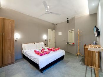 Мы отдыхали в банном отеле с маленьким ребенком и остались под большим впечатлением! Спасибо большое Абдулле за его большое гостеприимное сердце. Спасибо большое помощнику Раджу за его доброе сердце, внимательность, помощь! Выбирала отель по отзывам, не ошиблась ни в чем. Отель находится в минуте от бикини пляжа. Возле этого пляжа находится просто потрясающий риф с рыбками. Также в отеле предоставили по демократичной цене маску для снорклинга (1$ за сутки), накупались в удовольствие. Рядом с отелем находится около 5-7 ресторанов с хорошей кухней. Но мы ужинали преимущественно у Абдуллы, потому что у него вкусно, дешевле, чем в ресторанах, а также его помощник Радж делал наш каждый ужин уютным. Каждый день наш номер убирали. Причем если у нас спал ребенок, убирали в другое , удобное для нас время. За время нашего прибытия нам меняли постельное белье, коврики, полотенце. На улице прекрасный красивый сад, сушилки для вещей. В номерах нет плесени, тараканов, Жуков, ящериц - это было огромным плюсом! Как-то я увидела, что Радж моет даже внешние стены отеля в обеденное время тряпкой. Я была удивлена этому чистоплотству. Добирались до отеля на катере. 50$ в одну сторону с человека, Абдулла все организовал, с этим не возникло никаких проблем. Встретили. Проводили. Поэтому если вы сомневаетесь ехать или нет в данный гестхаус, 100% ехать. Все на высоте. Ну а я плакала, когда уезжала, потому что было все прекрасно. И верю, что когда-то мы еще встретимся. За все спасибо вам, Абдулла и Радж ♥️