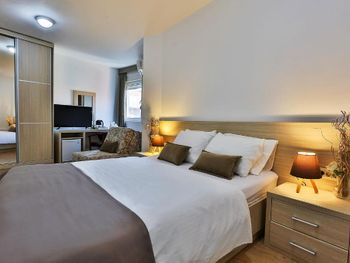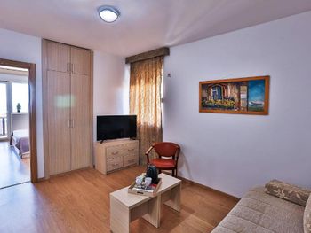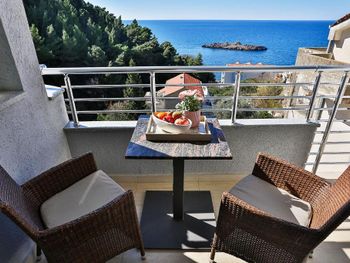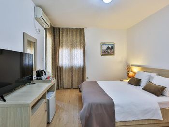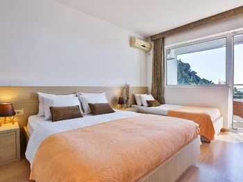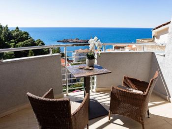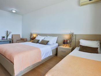 Расположение прямо рядом со всеми тремя пляжами - Свети Стефан, короля и королевы. Все в пешей доступности. Вид с балкона на море и каменный островок. Нас встретила сотрудница Биса - очень радушная и доброжелательная. Можно брать пляжные зонты бесплатно.