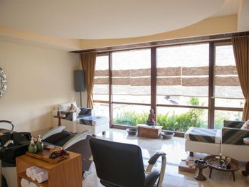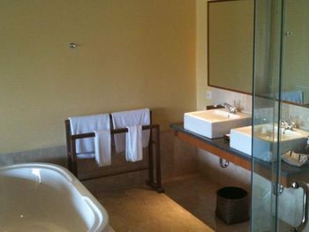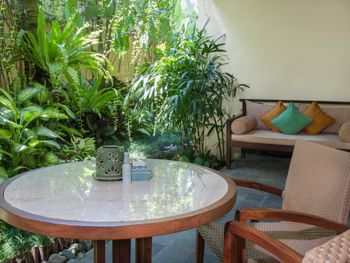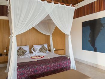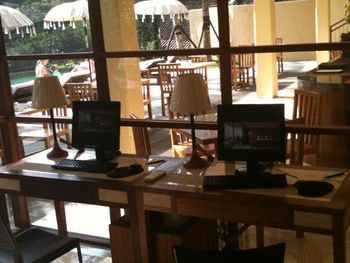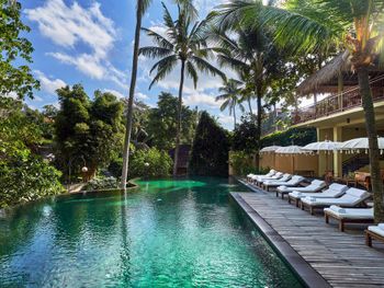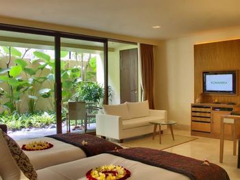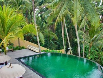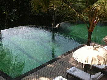 Мы заезжали группой 15 девушек на одну ночь. Таксист изначально привез в другой отель Komaneka. Оттуда нас забрал бесплатно отельный трансфер и отвез в тот отель, который мы бронировали. Пока ждали машину, нас накормили фруктами и дали welcome drink. В нашем же отеле персонал был так же вежлив и приветлив, угостили напитками и фруктами, проводили по номерам. Номера очень большие, комфортные, ванная комната доставила огромное удовольствие. У девочек были стандартные номера, мы с организатором группы брали виллу на 4 человека - она делилась на два номера, между которыми была площадка с садом, столиком и стульями. В нашем номере было две комнаты - гостиная и спальня с балдахином. Огромнейшая ванная комната с ванной, душем и гардеробом. Мы были в восторге от номеров!!!! Бассейн был небольшой, но вокруг было так живописно, что все были в легкой эйфории. Вкусный сытный завтрак)) Утром мы выехали и оставили спокойно все наши чемоданы в luggage room, пошли гулять на весь день, пару раз приходили докладывать пакеты с обновками, и персонал к этому относился очень спокойно. Жить в тропиках было удовольствием, даже спать со звуками природы и с забравшимися гекконами на вилле)))