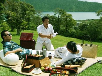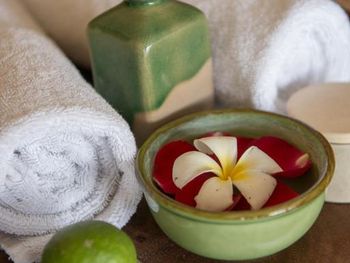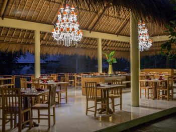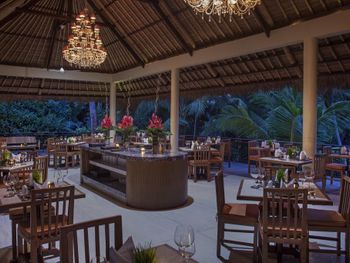 В ресторане курортного отеля Komaneka Rasa Sayang подают блюда индонезийской и интернациональной кухни. Ежедневно для гостей сервируют бесплатный послеобеденный чай. Круглосуточно осуществляется доставка еды и напитков в номер.