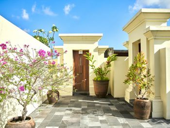 Отель далеко не новый, местами достаточно сильно обшарпанный. На фотографиях все выглядит лучше чем на самом деле. Не разрешили поснимать с фотографом в саду, хотя мы сняли этот отель ради фото. Причём сначала заявили, что это политика отеля, а потом неожиданно попросили заплатить 900 тысяч рупий (видимо политика испарилась). Вид из номера на соседскую стену. Вид из бассейна также на стену и на соседний отель. The hotel doesn’t look new. The view from window was on the wall of another building. The view from the pool was on another hotel and also wall. We asked if we can make some photos with our photograph early in the morning in garden. First they said No (it’s a policy of the hotel). Then later they told us to pay 900 million rupiah. So policy maybe disappeared in between. That was not nice!