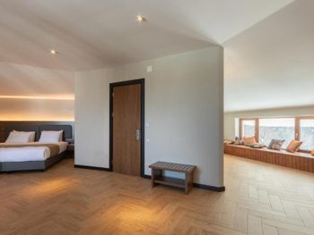 Расположение отличное - немного вдали от суеты и рядом прекрасный лес. Для лыжников недалеко подъемник, но пешком с лыжами далековато. Нужно спускаться на машине к подъемнику. Завтраки стандартные: омлеты, сосиски, овощи, фрукты, каши. В целом, ок! В номере тепло, с балкона красивый вид. Небольшой уютный дворик отеля. В ресторане хороший выбор блюд, все вкусно.