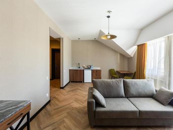 Номер не соответствовал заявленному перечню услуг и удобств (фен был в ванной только на первом этаже, микроволновой печи не было, звукоизоляция отсутствует напрочь, кухонные пренадлежности отсутствовали, Обеденный стол отстутсвовал, балкон представлял из себя 20 см мраморного отступа (указанная мебель на улице туда бы никак не поместилась), вид из окна только на внутренний дворик (хотя отдельно указан вид на горы), Но самое невыносимое- это постоянный запах канализации из туалета, который распространялся на все 150 м2 номера и находится в номере было просто невыносимо. На просьбу переселить нас нам отказали.