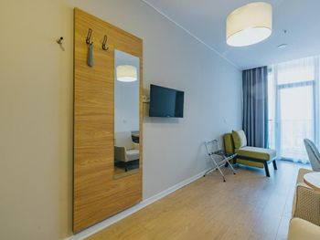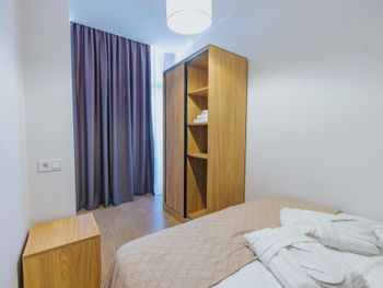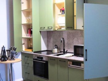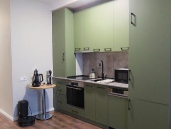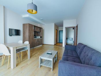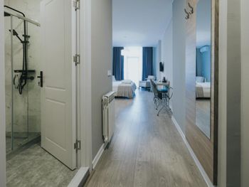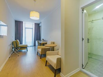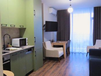 Видно, что апартаменты новые, свежие, все очень чистое, без следов использования Предоставляют халат, тапочки, все есть для проживания Шикарный вид на море Приятный интерьер Рекомендую!