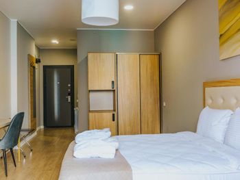 Новый апарт отель европейского уровня 4 звезды, расположен на высоких этажах недавно построенного здания Komunna Tower. Хорошая звукоизоляция, отопление, быстрый интернет, чистота и спокойная обстановка способствовали расслабляющему отдыху, цена соответствует качеству услуг. Спасибо персоналу за теплый прием и прекрасное обслуживание!