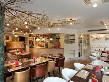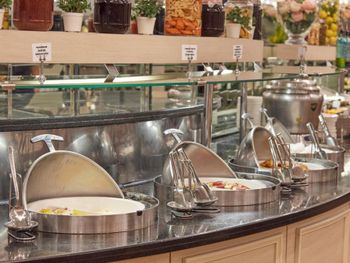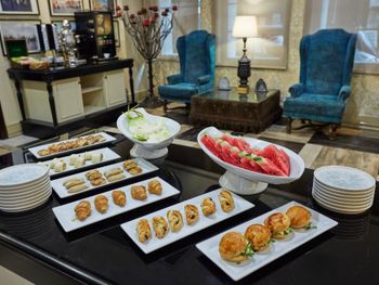 Завтрак «шведский стол» в ресторане Kazan состоит из закусок и сладостей, приготовленных из сезонных продуктов. На обед и ужин в ресторане Strada подают блюда интернациональной кухни и региональные вина.