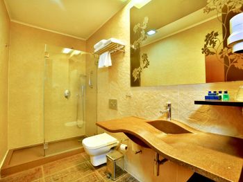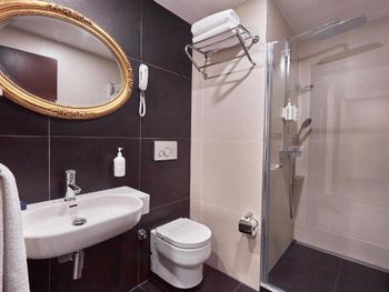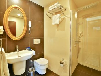 Отель уставший. Уставшее всё. Чтобы не видеть этого в отеле царит полумрак. Кровать отвратительно мягкая. Дверца душа отваливалась.