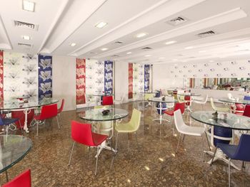 ⁃ Завтраки проходят на -2 этаже - в подвальном помещений по сути, т.е. без окон и только с искусственным светом. Предложение на завтраке среднее, выбрать можно, но это точно не уровень 4 звезд, как в прочем и всё остальное в этом отеле.