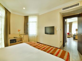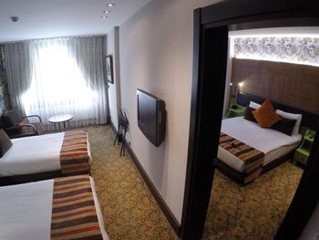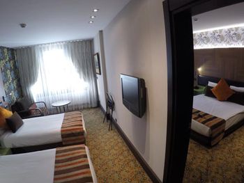 У отеля очень неплохая локация в шаговой доступности от площади Таксим и одноименной станции метро. Он расположен вдоль улицы, где есть вся необходимая инфраструктура для проживания. В вашем распоряжении есть СПА, ресторан. Мне запомнился наш просторный номер с выходами на 2 балкона. У него планировка 1+1, что удобно для большой компании или просто семьи. Внутри есть все необходимое для проживания в отеле. Персонал следит за чистотой, поэтому нареканий не было