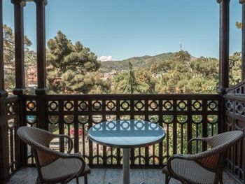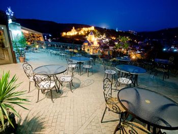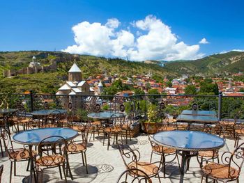 Грузинские и европейские блюда подаются в ресторане отеля "Копала", из которого открывается вид на крыши Тбилиси. Завтрак сервируется каждое утро, а насладиться напитками гости могут на просторной террасе.