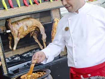 Столовая. Кроме официантов, английский не знает никто. Добиться от людей чего то, накладывающих вам еду, не возможно. Острое/не острое/говядина/баранина и тд. Ответ один- «туркиш» Больше они ничего не говорят.