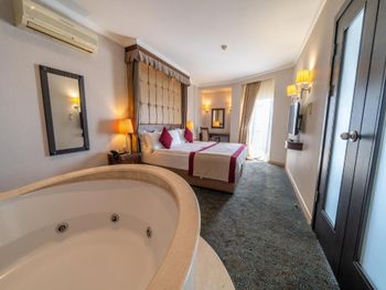 Номера в отеле Korumar Делюкс выходят на балконы с видом на море. Каждый номер оснащен спутниковым телевидением, уютным гостиным уголком и отдельными ванными комнатами с душем или ванной.