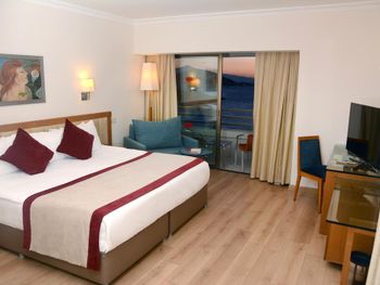 Отель не новый. Прочитала, что в 2013 была реновация, но поменяли в номерах далеко не все, присутствует ощущение облезлости. Пляж малюсенький, и очень мало место где купаться именно с пляжа, не с понтона. Мы бронировали номер с 1 кроватью, дали с 2, и когда мы попросили поменять, предложили сдвинуть кровати) В итоге поменяли, но пришлось для этого настоять на своем. Еще балкончик тесноват, перила когда сидишь, немного загораживают обзор.