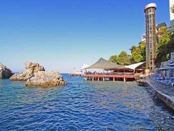 Вид из номера на море замечательный, есть питьевая вода и чайник. Питание в отеле качественное и разнообразное. Море чистейшее, зона для купания или отдыха у воды продуманная, удобная, много спусков в море. Есть лифт для комфортного доступа к пирсу для купания. Большой бассейн. Красивая территория.