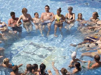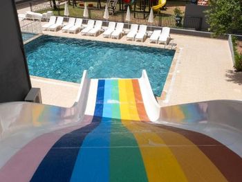 Почему то после получения подтверждения от отеля пришлось ждать у ресепшн минут 40-50, чтобы заселиться. Очень долго оформляли и что-то выясняли по поводу моей брони. Территория отеля, по сравнению с соседними отелями, больше, но людей очень много на территории. Лежаки у бассейна люди занимают с раннего утра и тем, кто проснулся позже придется обходится без них. Есть три бассейна: Первый - На территории ресторана, где неудобно купаться, так как рядом только столы и стулья (нет лежаков). Хотя намного чище, чем остальные. Второй - главный бассейн, куда ходит большинство людей и он постоянно забит. Третий - бассейн с водной горкой. Он меньше, чем второй. С лежаками там тоже проблема.