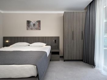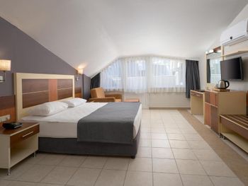 Очень понравилось, уютный, небольшой отель! Постоянно радовали прекрасным разнообразием блюд. Даже был очень интересный фестиваль Октоберфест, на котором ооочень богатый выбор вкусных блюд был. Отдельное спасибо за этот праздник! Бассейн красивый и всегда вода в нем чистая, что очень порадовало. Такой же как на фотографии. Расположение отличное! Хоть и рядом дорога, совершенно никак не помешала нашему отдыху, тем более есть подземный переход к морю. Жаль, что его закрывают вечером, но если хочется на море, можно и через дорогу вечером перейти. Пляж тоже очень хороший - просторный, с лежаками. Есть плиты в море, но их не так много, в отличии от Махмутлара. Поэтому в волны нужно быть аккуратными с этими плитами в море - может быть для кого то неприятным сюрпризом, в остальном везде песок. Вид на гору шикарен особенно по вечерам! Да, ещё очень порадовало, что есть шоу программы. Попали 2 раза на акробатическое шоу, есть что посмотреть! В общем за такое соотношение цены и качества это лучший вариант за все включено!